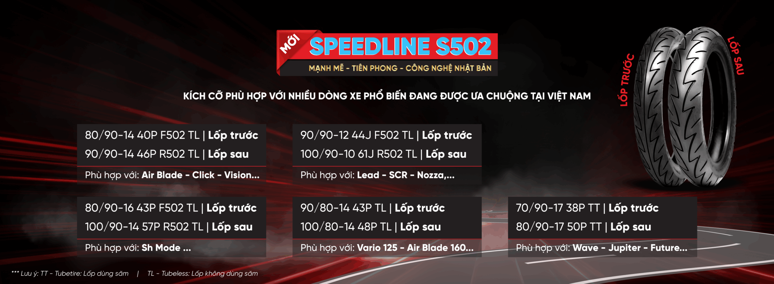 | 80/90-16 43P F502 | 100/90-14 57P R502 |